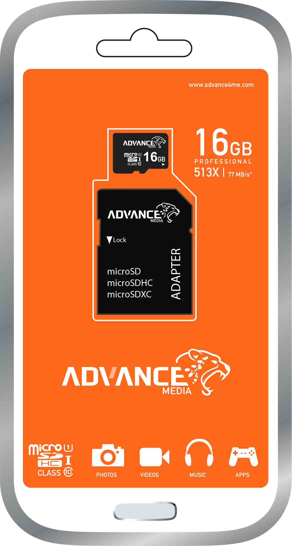 ADVANCE microSD memory cards offer an easy and affordable way to expand your mobile device’s onboard memory. Cards can give you additional storage space for your favorite apps, photos, and videos.